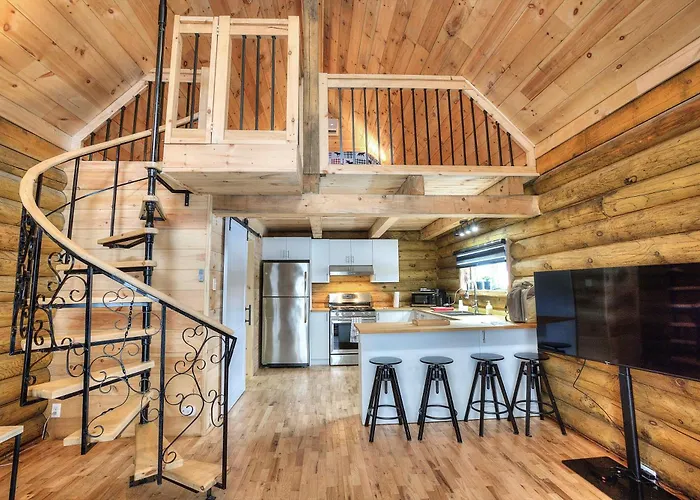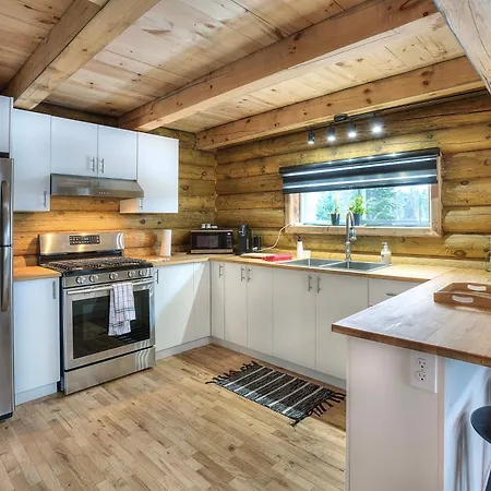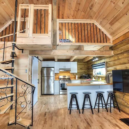 The Cozy Log Cabin With Private Hot Tub Saint-Jovite is located about 4 km from the tubing area and provides snow skiing, hiking, and cycling for active guests. Featuring a Jacuzzi, the holiday home is 10 minutes by car from the IGA extra Tremblant grocery store.